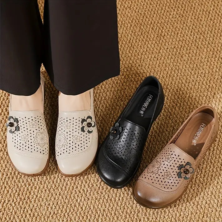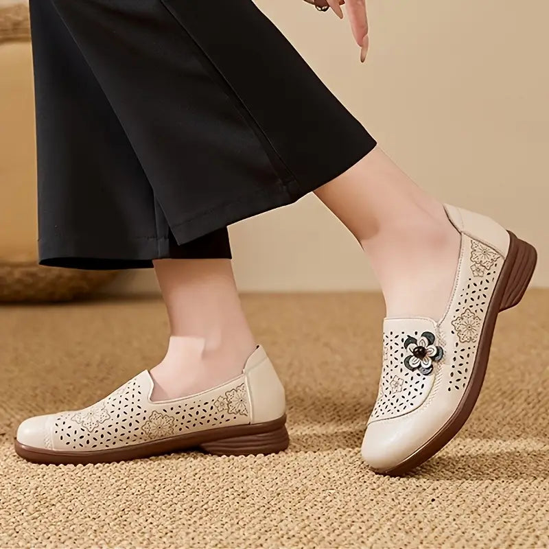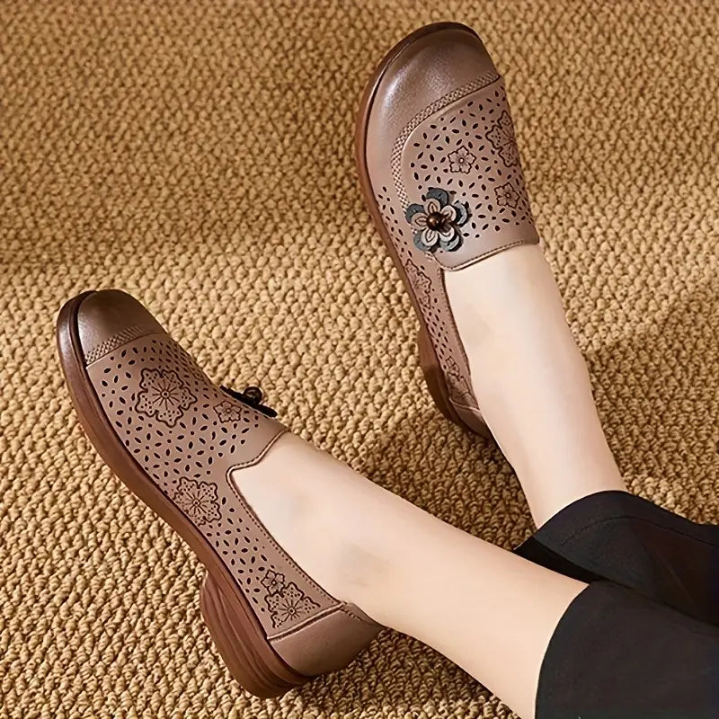 Detalles florales tallados con delicadeza, ideales para quienes aman lo artesanal y femenino. Cada paso refleja belleza y autenticidad.
