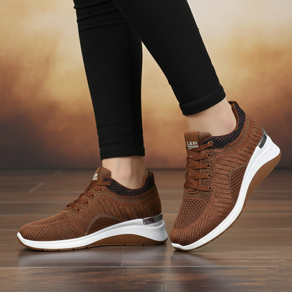 El tenis muy tejido flexible abraza el pie con suavidad, permitiendo un paso libre y natural. Es un calzado que acompaña sin estorbar, diseñado para quien disfruta caminar sin límites.