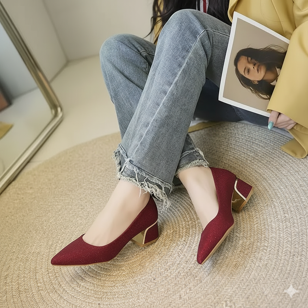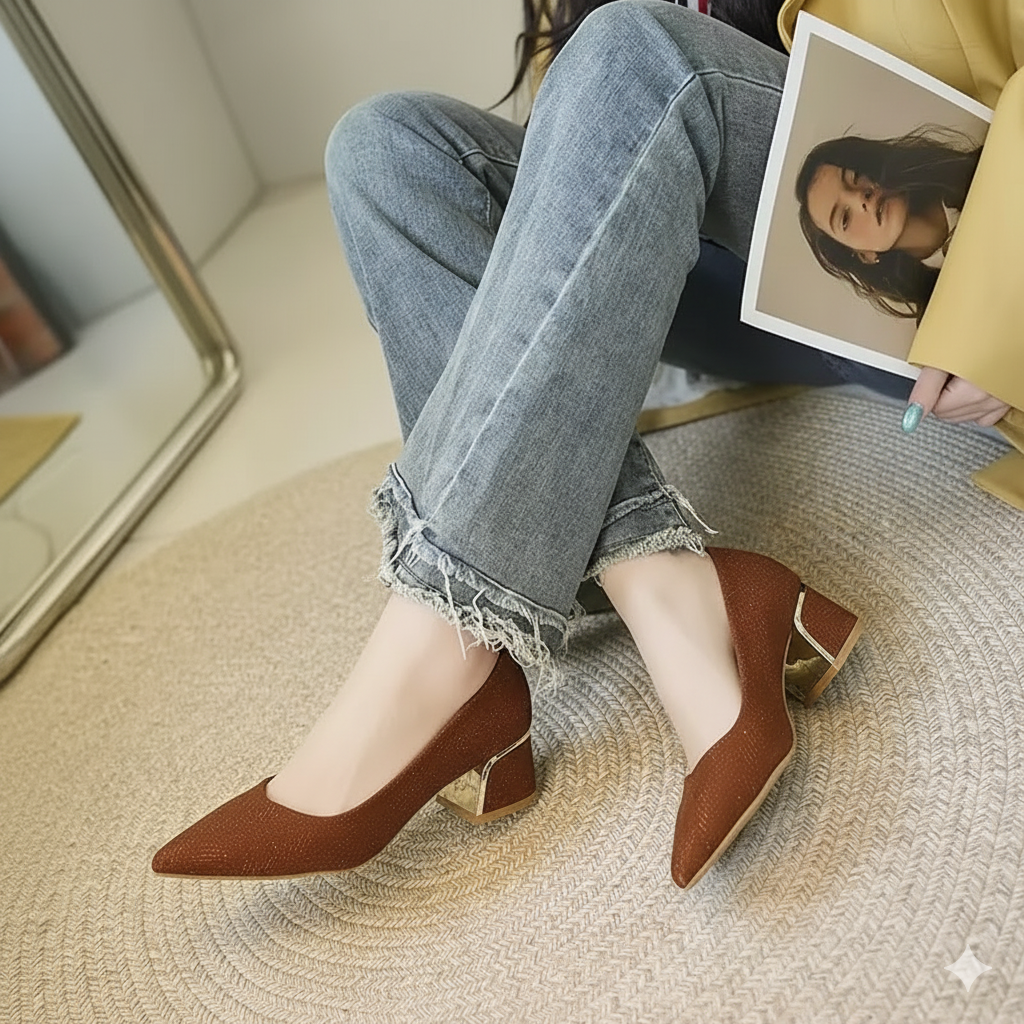 El diseño habla de una elegancia sutil pero impactante. La punta afilada y el tacón moderado añaden sofisticación sin sacrificar la comodidad. Son el reflejo de una mujer que se mueve con gracia y determinación.