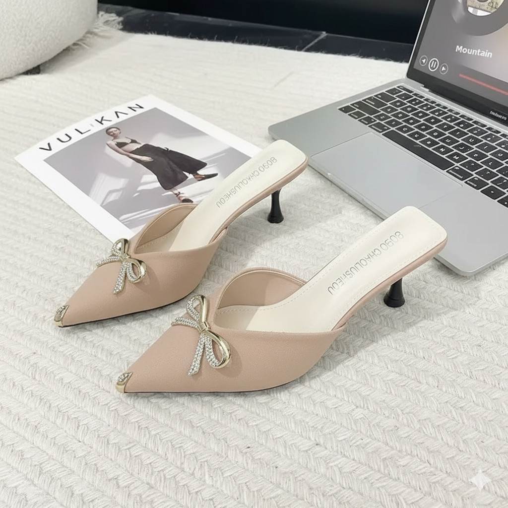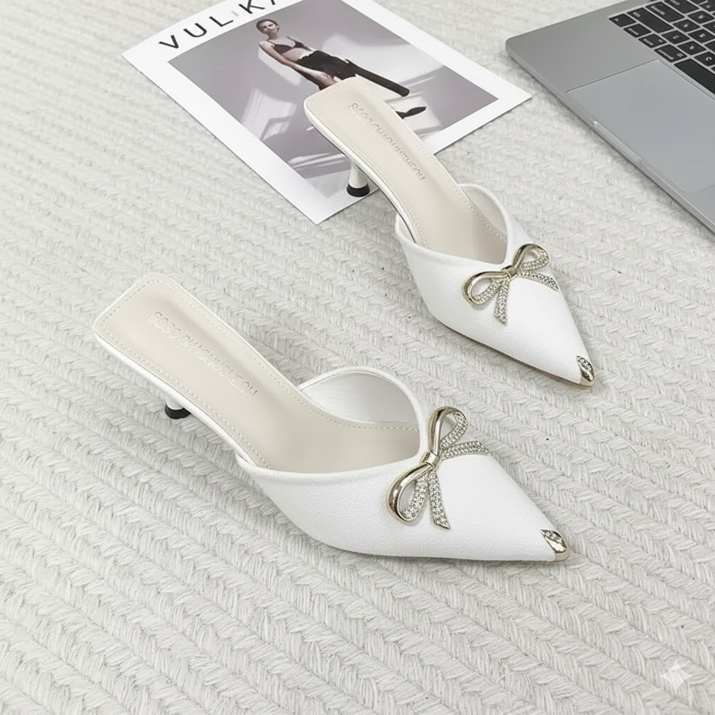 Los delicados lazos y el toque metálico en la punta hacen de este calzado una joya que resalta sin esfuerzo en cualquier ocasión.
