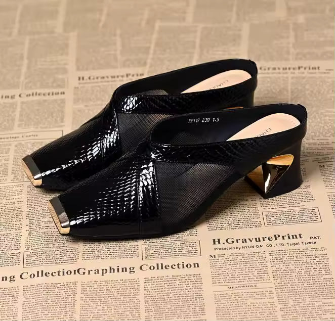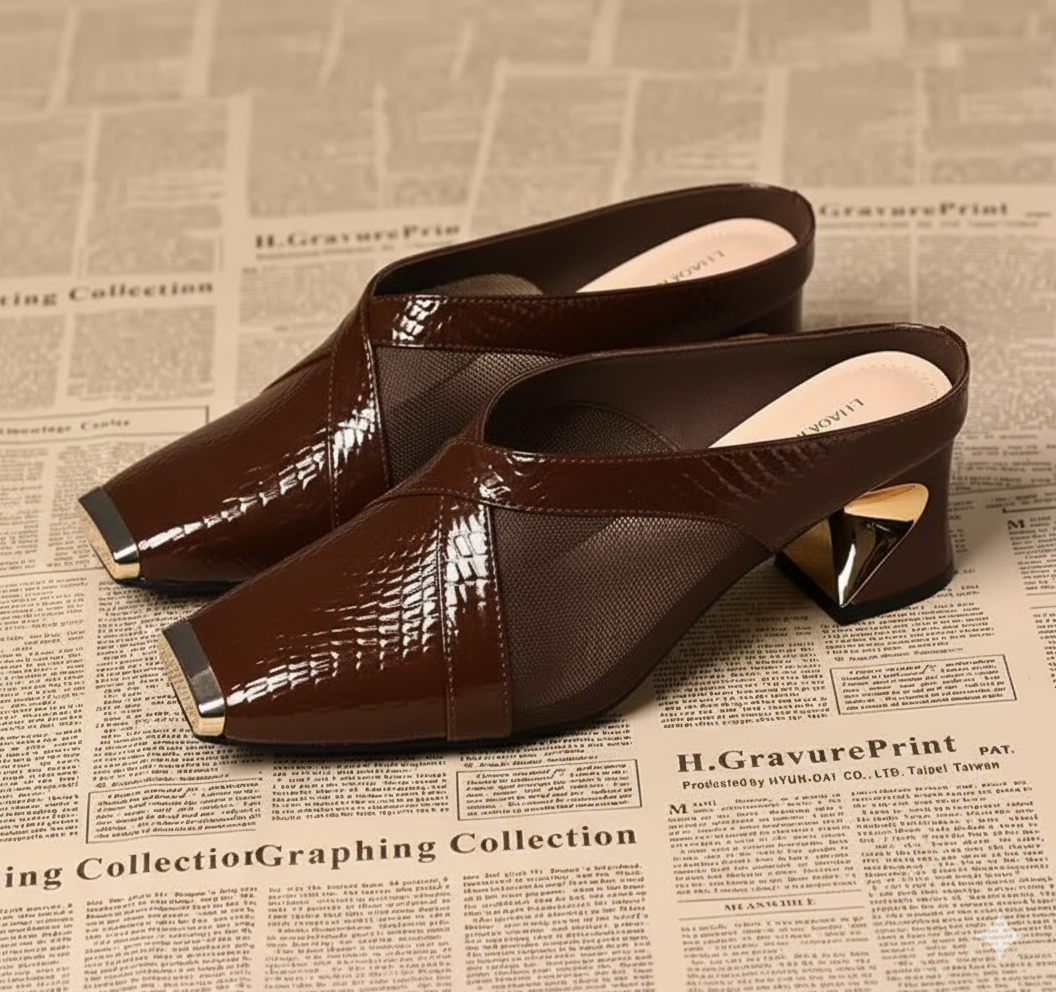 Inspirado en la elegancia urbana, este diseño combina texturas modernas con acabados brillantes que reflejan seguridad y distinción. Su estructura geométrica y punta metálica aportan una personalidad audaz, perfecta para mujeres que no temen destacar con clase.